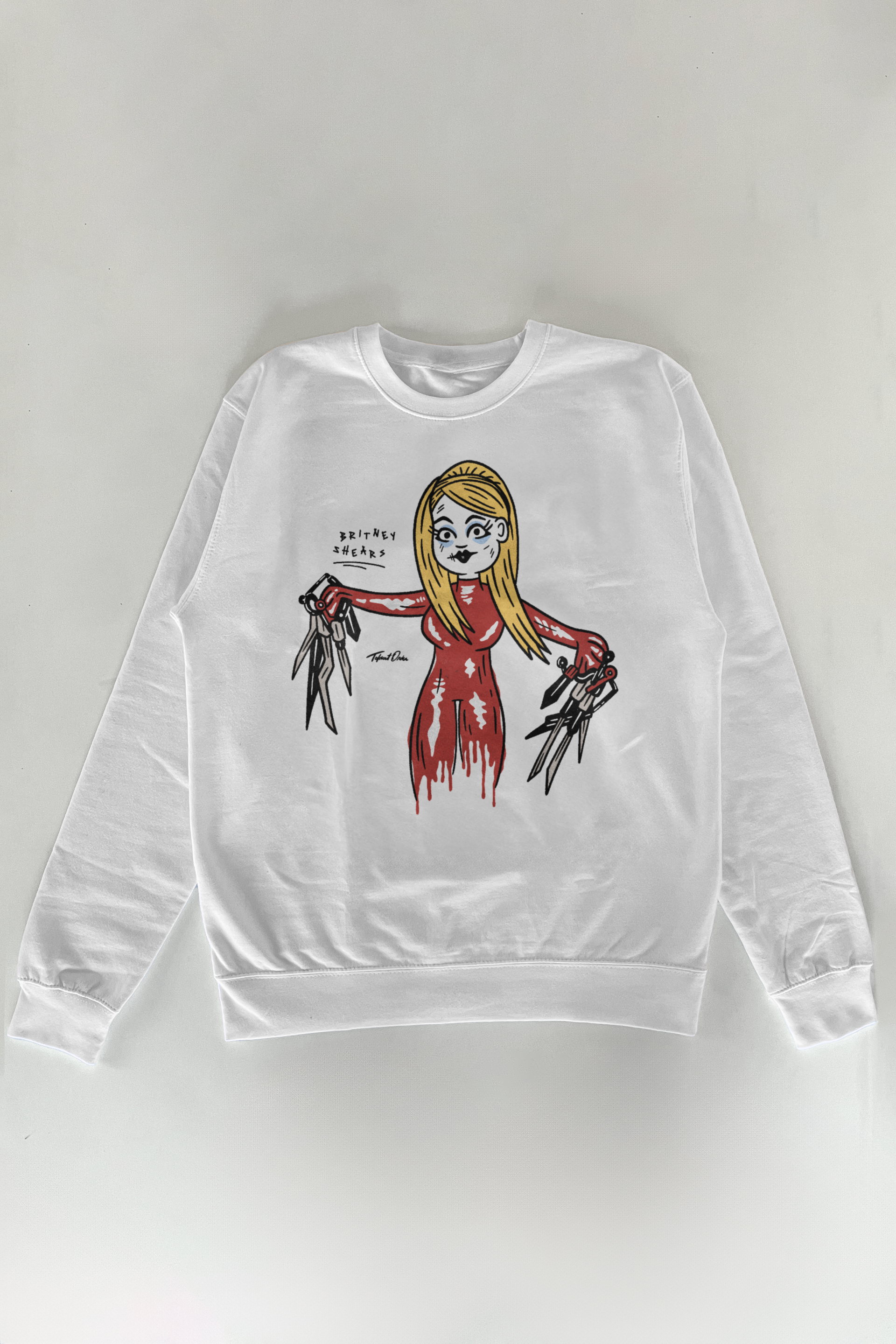 A mid-weight unisex pullover crewneck sweatshirt featuring an oversized print of a 'Pop Singer.' Fit runs on the smaller side, size up for oversized look.