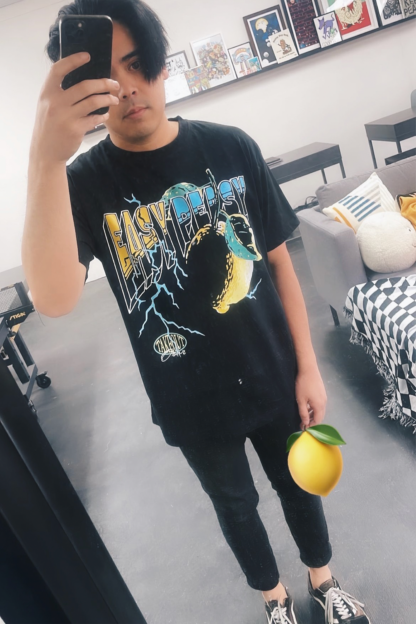Lemon squeezy. Garment dyed, seamless body crew neck featuring a 'Lemon' graphic printed direct to film on the front. Unisex sizing, so a looser women's fit.