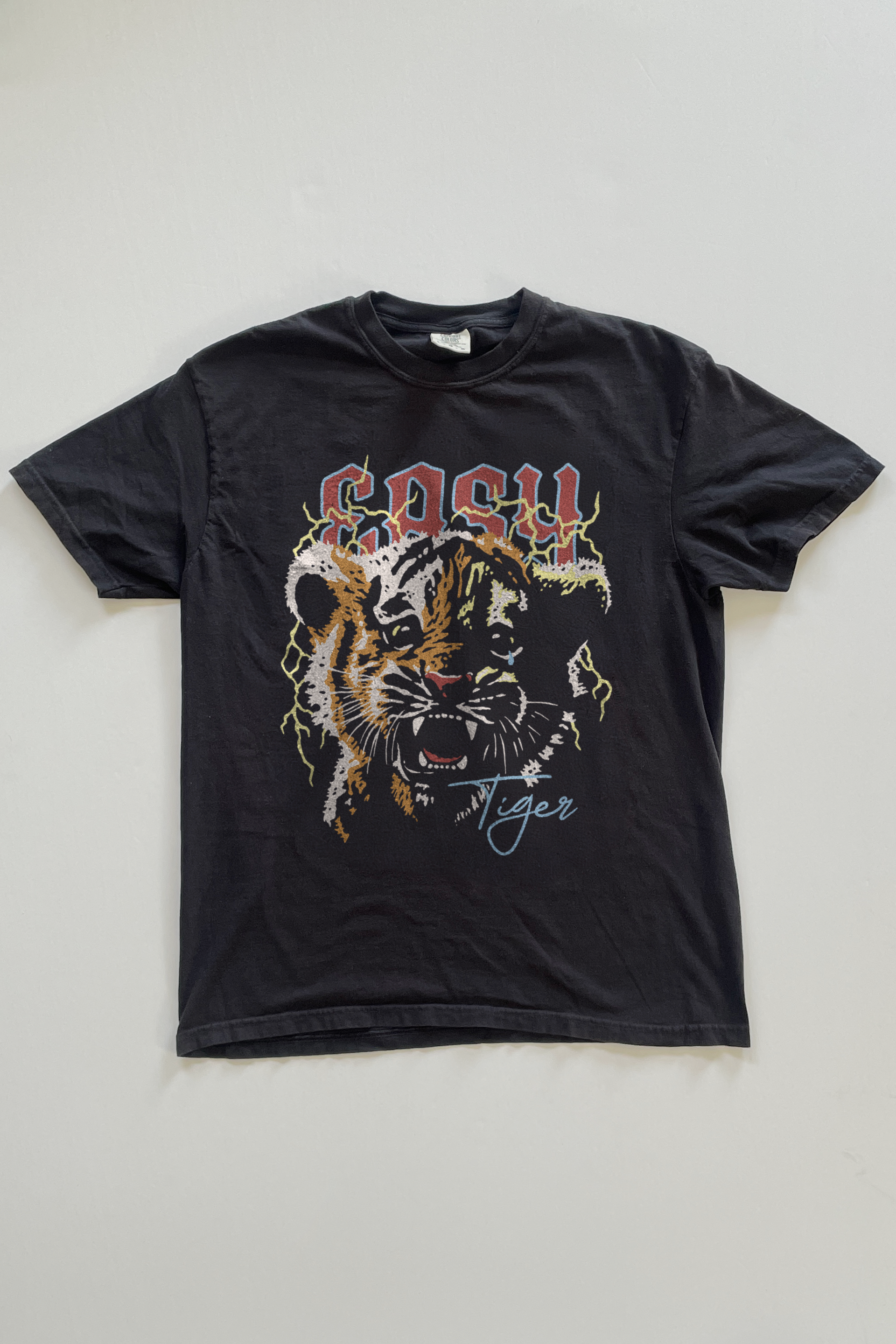 Whoa nelly. Garment dyed, seamless body crew neck featuring a 'Tiger' graphic printed direct to film on the front. Unisex sizing, so a looser women's fit. We suggest women order a size down.