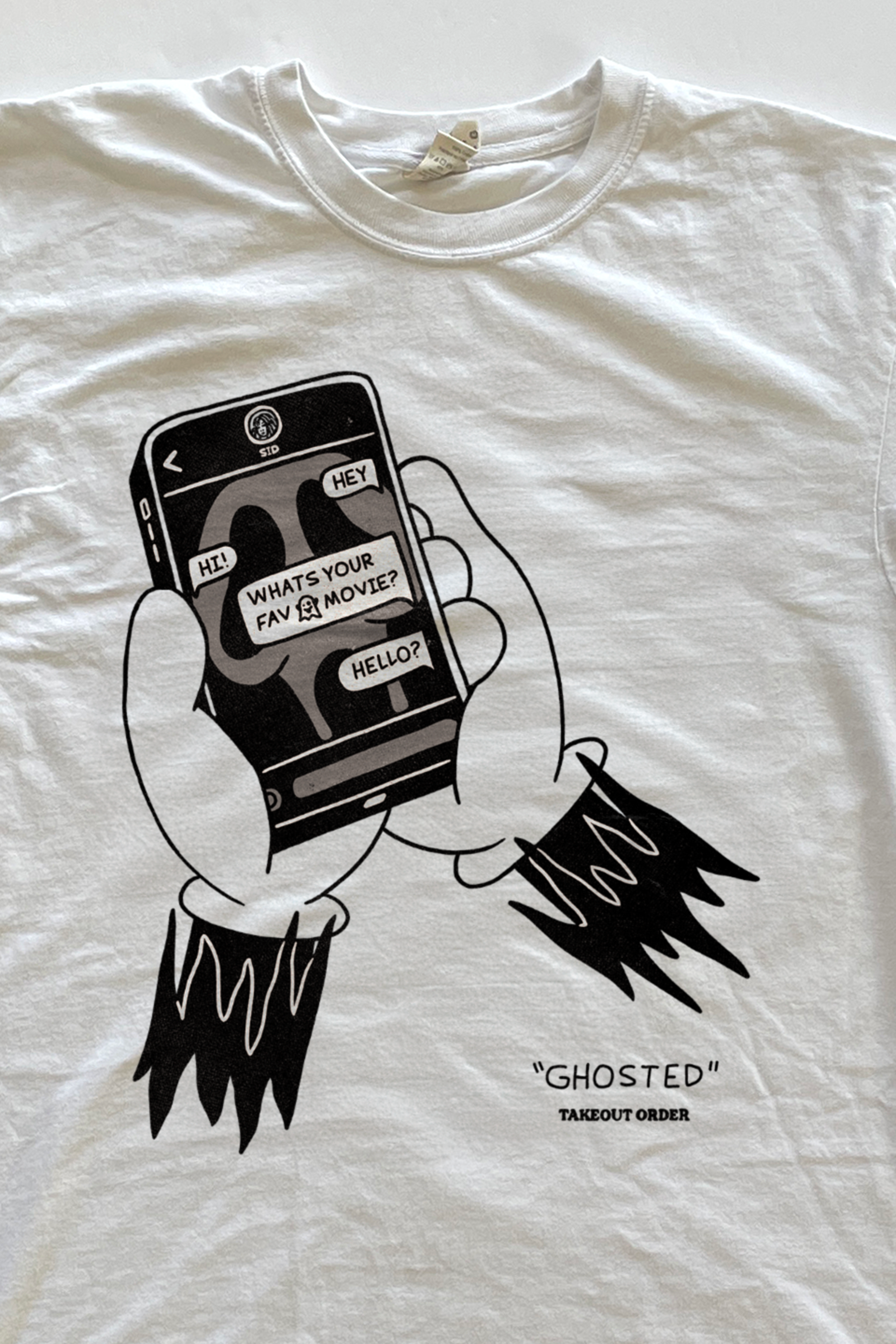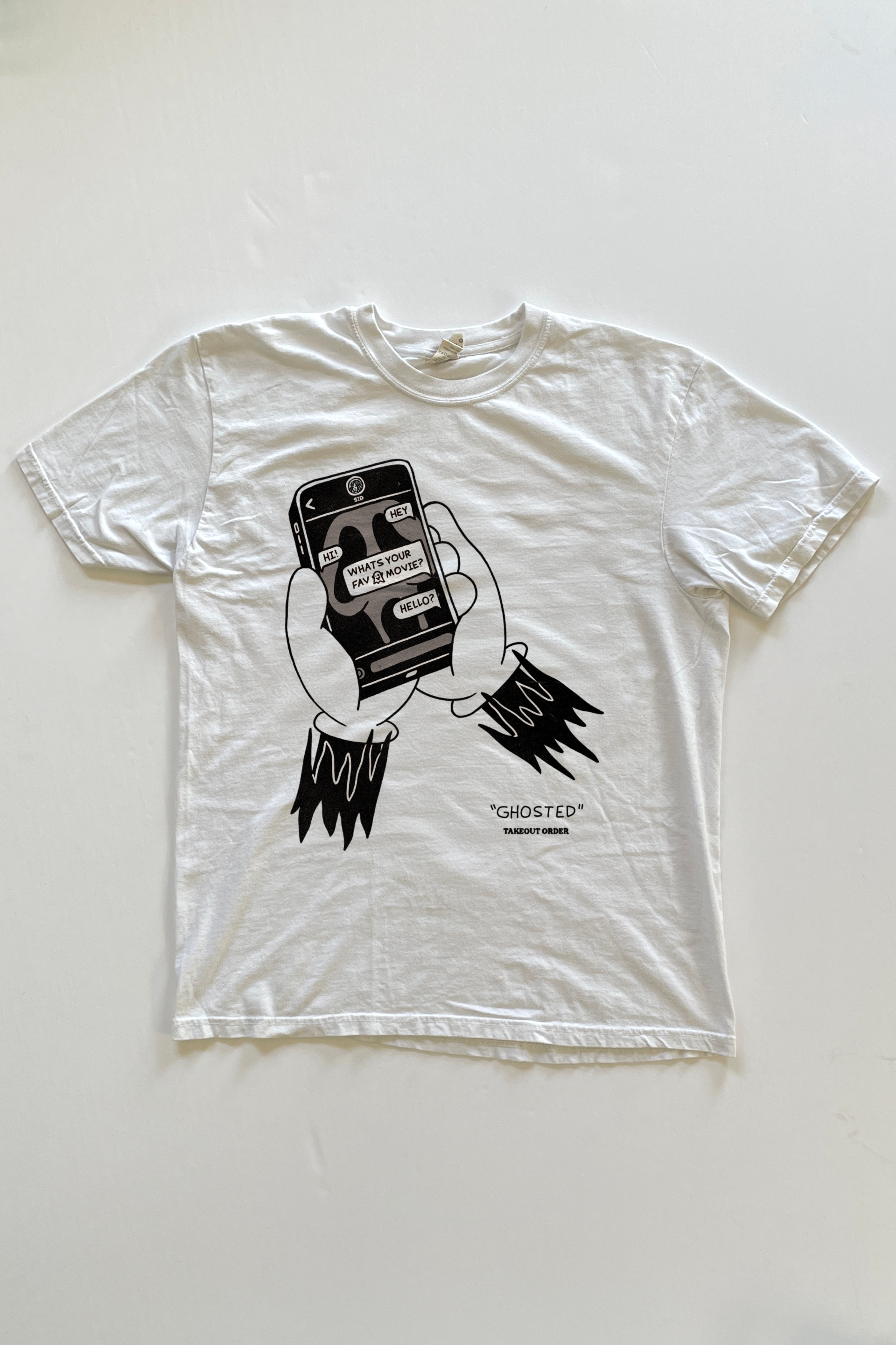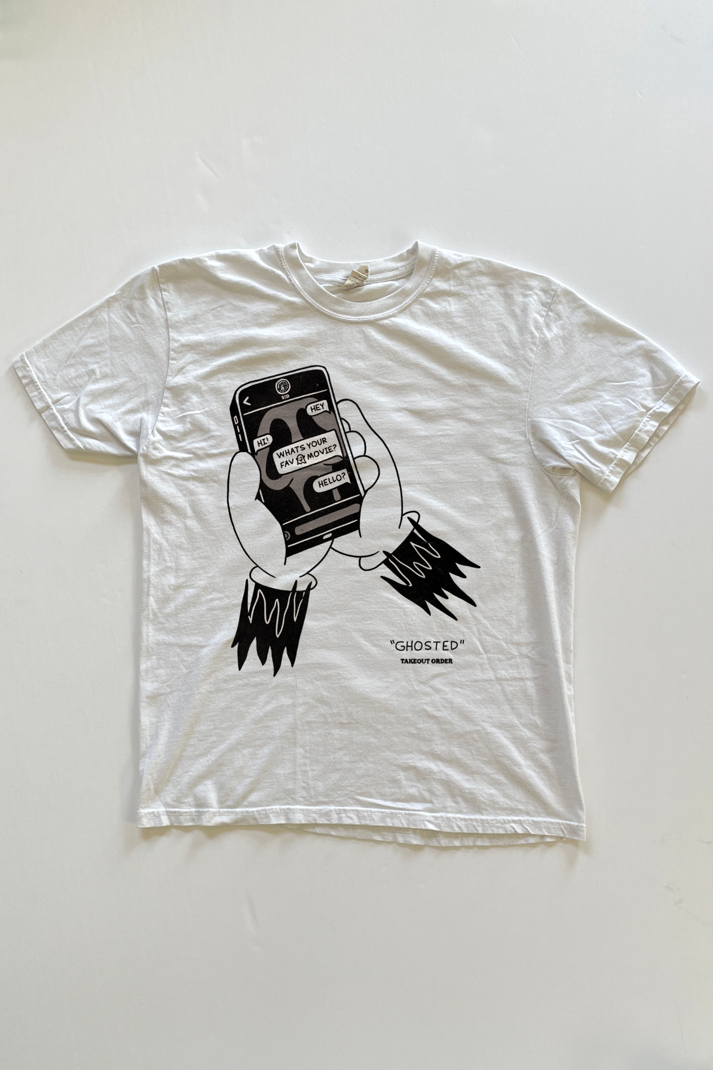 Hello? Garment dyed, seamless body crew neck featuring a 'Cell Phone' graphic printed direct to film on the front. Unisex sizing, so a looser women's fit.