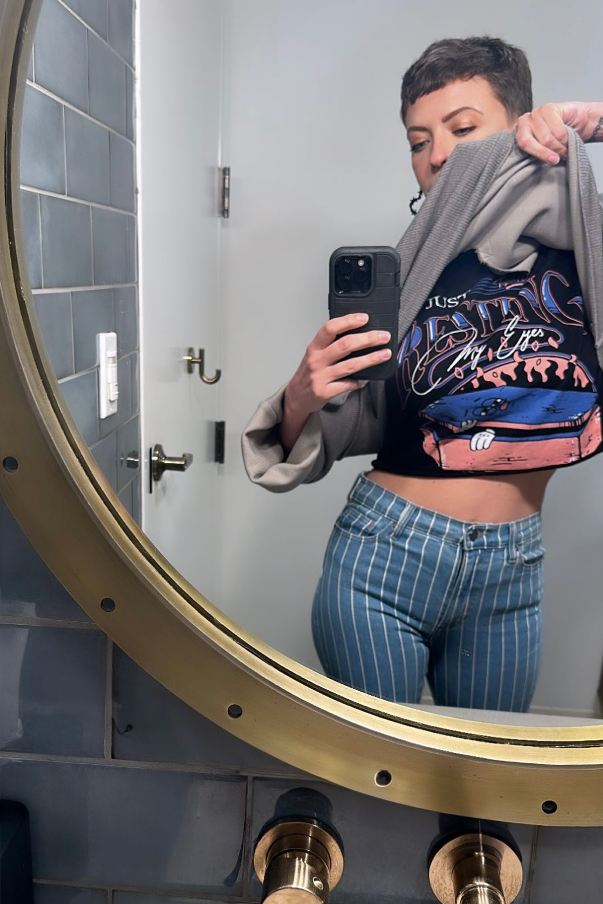 I'll sleep when I'm... Garment dyed, seamless body crew neck featuring a 'Coffin' graphic printed direct to film on the front. Unisex sizing, so a looser women's fit.