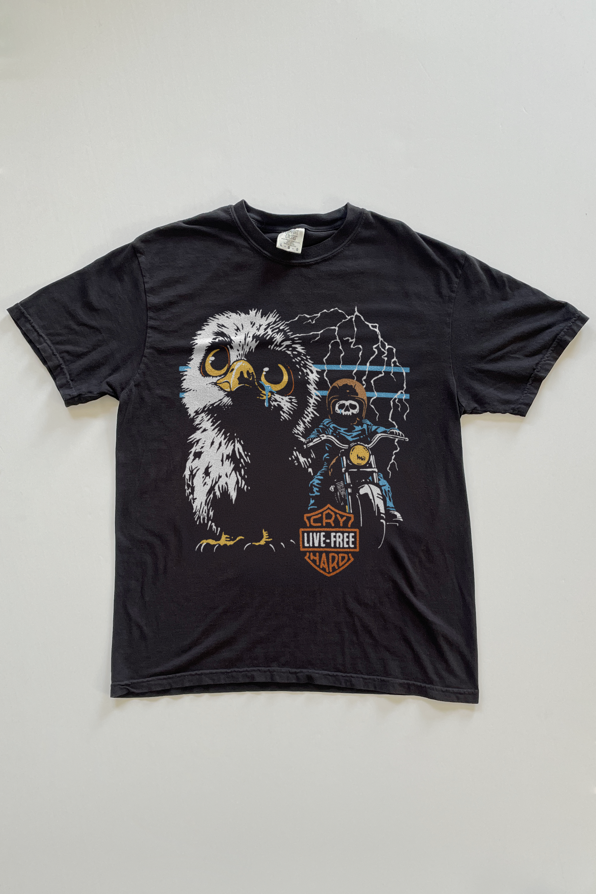 It's tearin 😢 up my heart. Garment dyed, seamless body crew neck featuring a 'Lair' graphic printed direct to film on the front. Unisex sizing, so a looser women's fit.