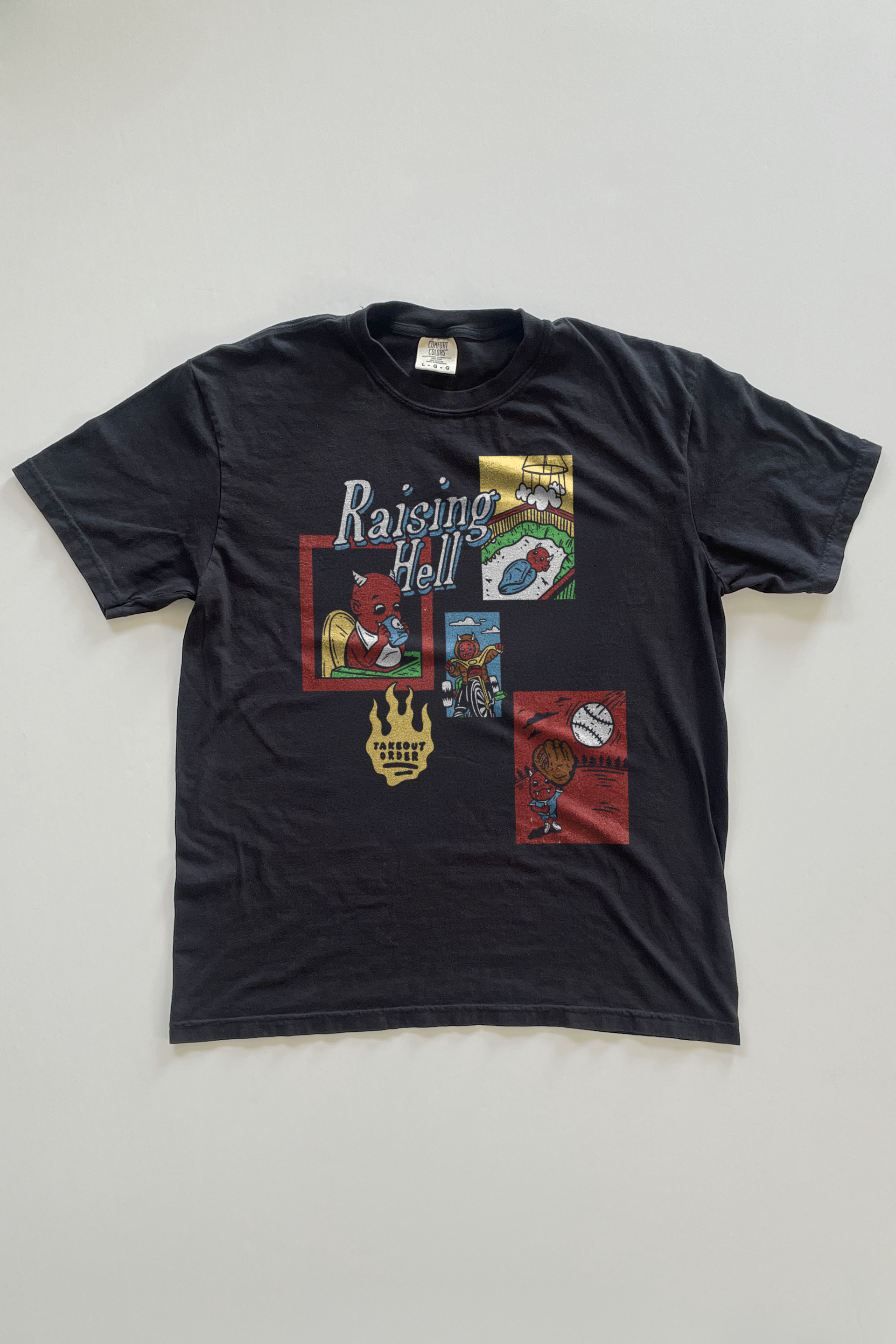 I just want to do hoodrat stuff with my friends. Garment dyed, seamless body crew neck featuring a 'Little Demon' graphic printed direct to film on the front. Unisex sizing, so a looser women's fit.