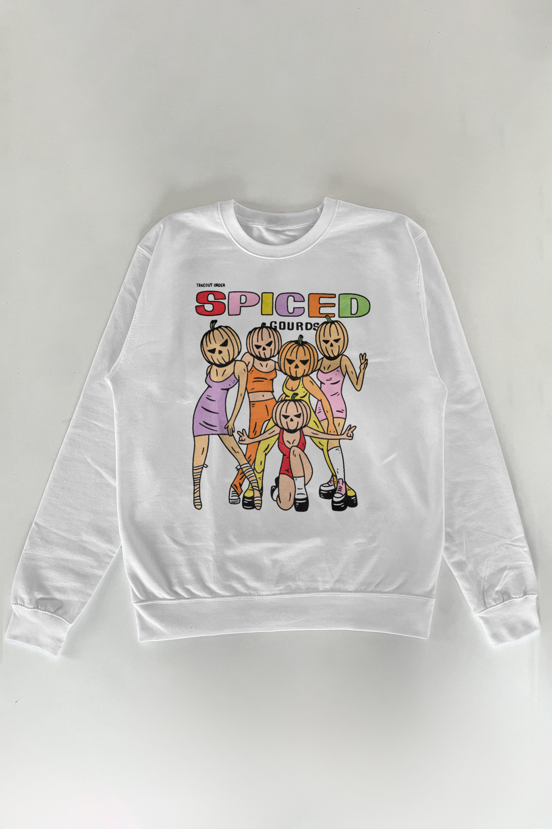 A mid-weight unisex pullover crewneck sweatshirt featuring an oversized print of a 'Gourd Band.' Fit runs on the smaller side, size up for oversized look.