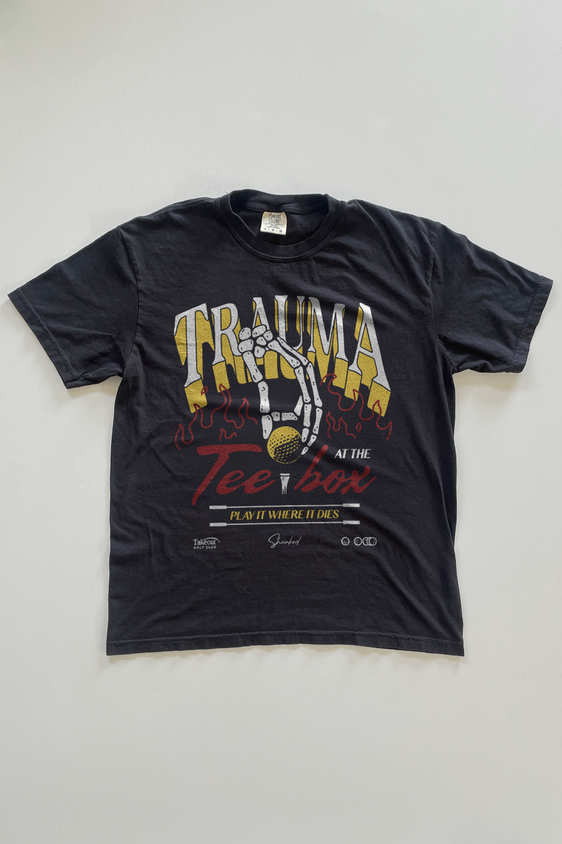 Garment dyed, seamless body crew neck featuring a 'Golf' graphic printed direct to film on the front and back. Unisex sizing, so a looser women's fit.