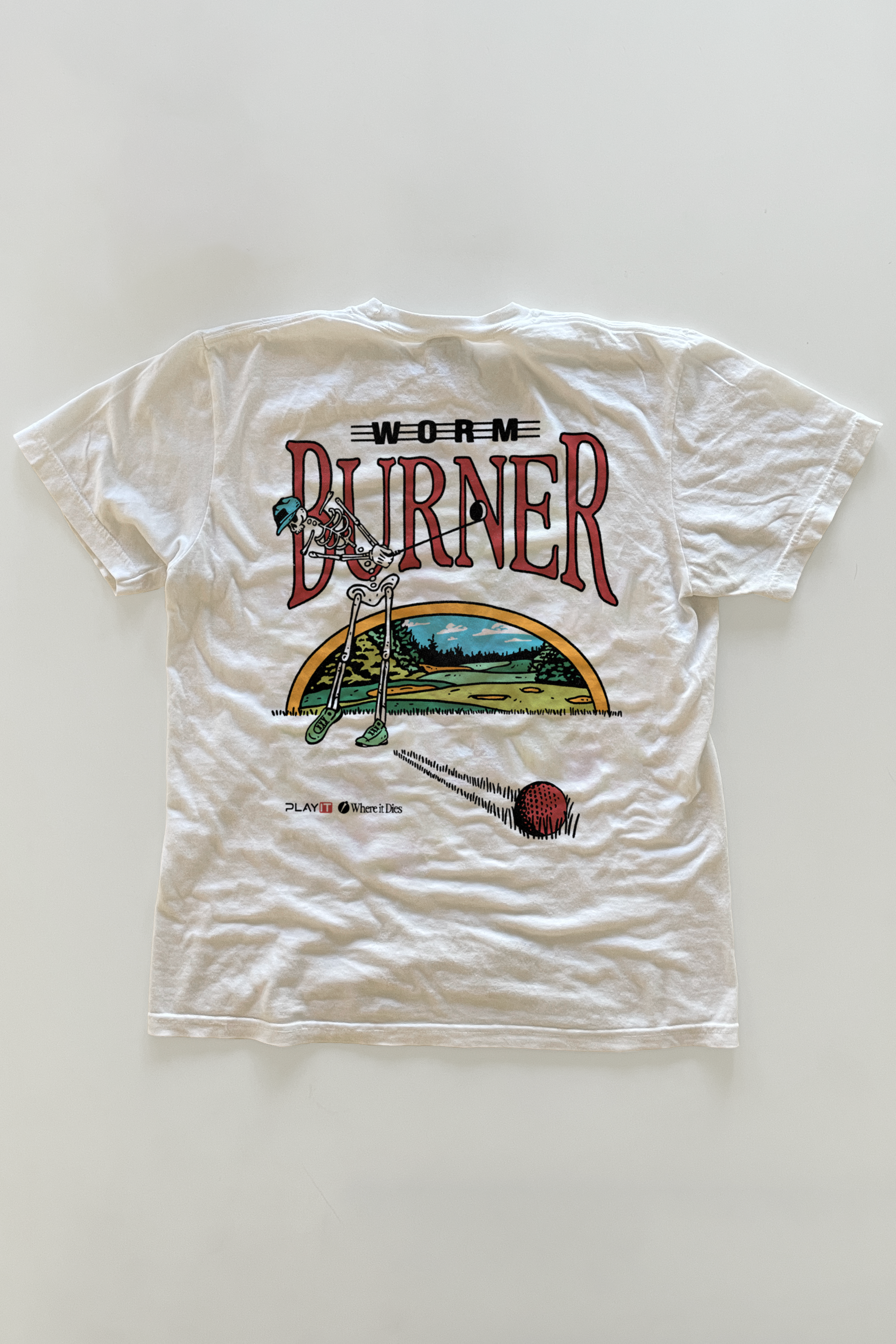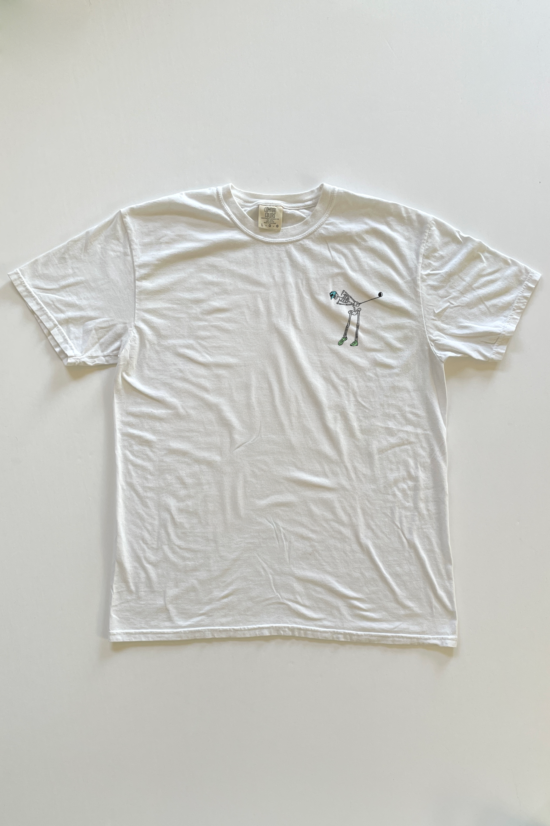 Garment dyed, seamless body crew neck featuring a 'Golf' graphic printed direct to film on the front and back. Unisex sizing, so a looser women's fit.